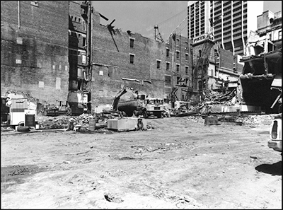 The interior of the Carlton Hotel was survived by a hole for 2 years leaving behind the famous façade as part of a shopping mall façade.